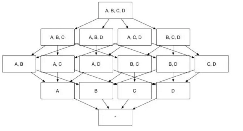 构建一个 4 个维度(A,B,C, D)的 Cube,就需要生成 16 个Cuboid。