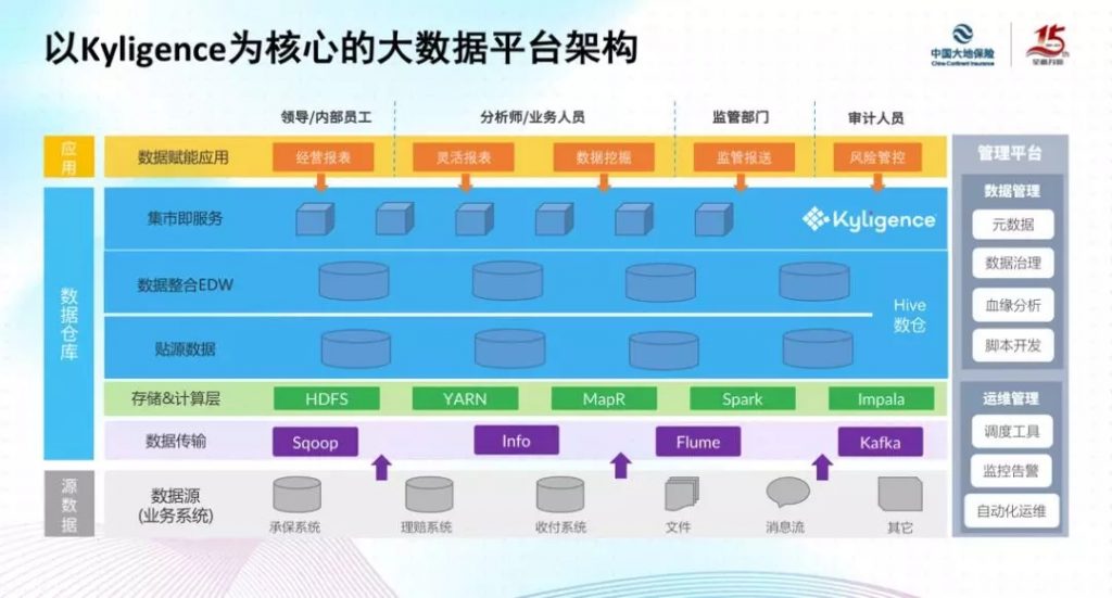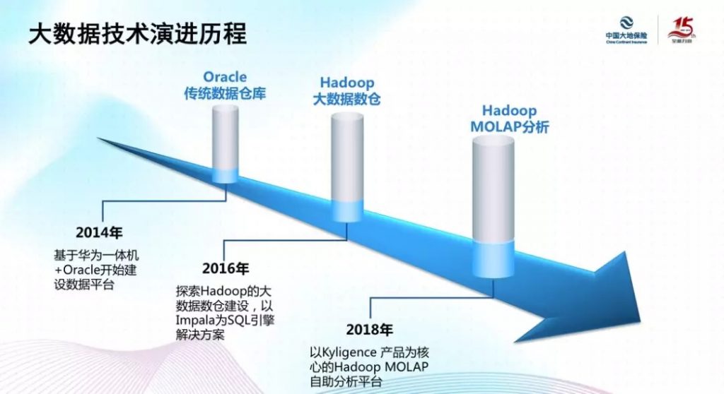 2018年,在与众多厂商历时几个月地沟通、交流、考察、POC后,中国大地保险搭建了以Kyligence 产品构建应用层数据集的Hadoop MOLAP自助分析平台。