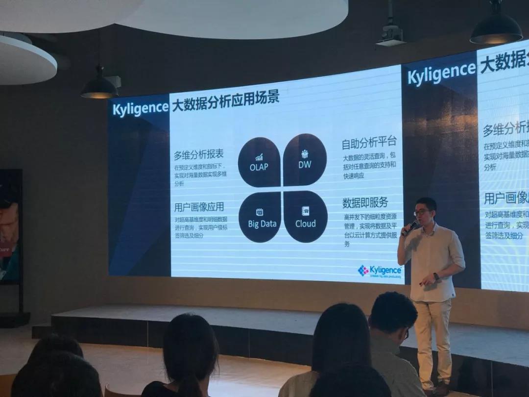 在他的演讲中,不仅对大数据时代零售企业普遍面临的数字化转型挑战抛出了自己的观点,也通过案例分享,对 Kyligence 的大数据分析解决方案 Kyligence Analytics Platform 如何解决这一困境做了分享。