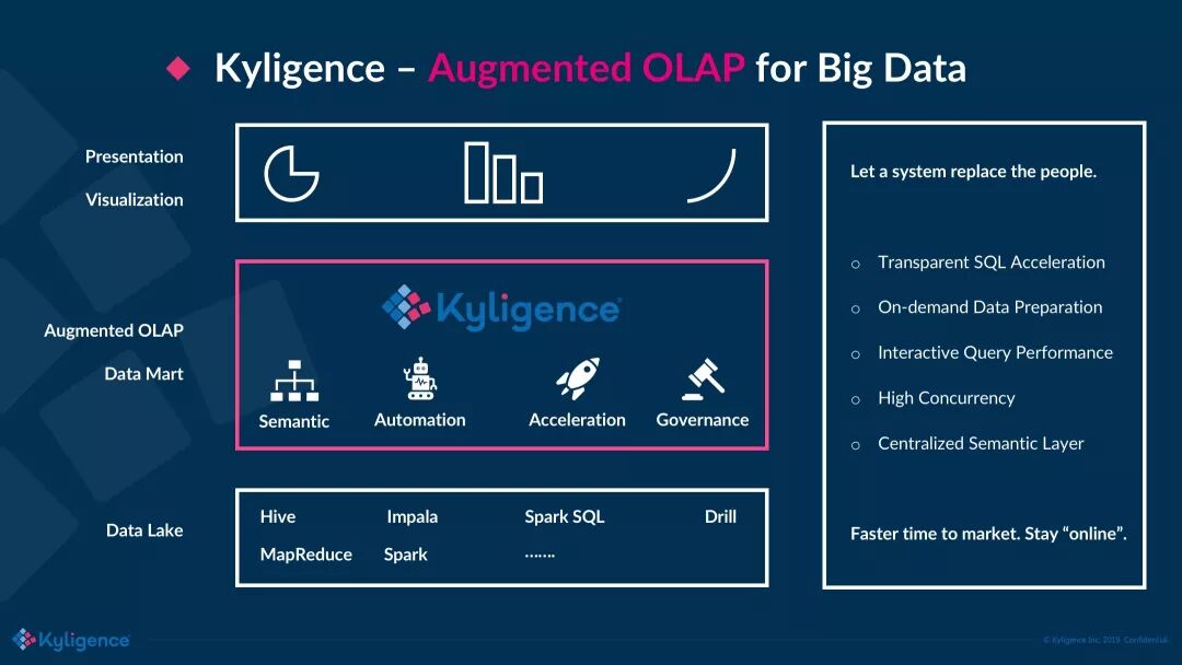 Apache Kylin 在 PB 级别数据上带来了开创性的即时分析能力,并被全球超过 1000 家企业所使用。由 Apache Kylin 核心团队创立的 Kyligence 公司(上海跬智信息技术有限公司)的使命是以自动化数据管理、发现、交互及洞察来为客户提升生产效率,它提供一个基于 Apache Kylin 的 AI 增强的数据管理和分析平台,帮助分析师和数据工程师轻松从本地到多云架构上构建受控的数据服务。